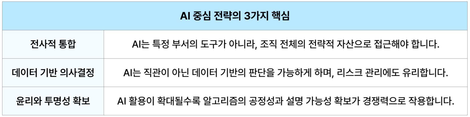 불과 몇 년 전만 해도 인공지능(AI)은 특정 분야의 자동화 도구로 여겨졌습니다. 하지만 지금은 상황이 완전히 달라졌습니다. AI는 더 이상 기술 부서의 실험적 프로젝트가 아니라, 기업의 전략적 방향성과 운영 체계를 근본적으로 재편하는 핵심 요소로 자리 잡고 있습니다.