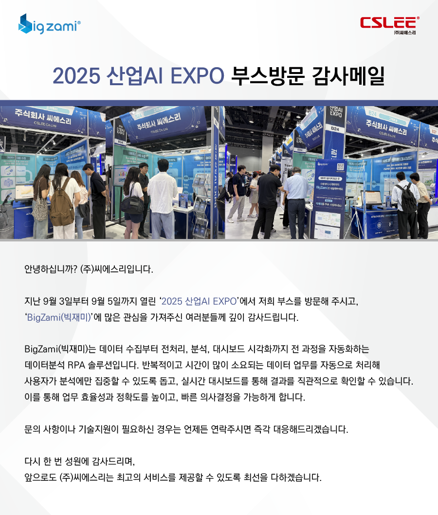 [BigZami] 2025 산업AI EXPO 씨에스리 부스에 방문해 주셔서 감사합니다!