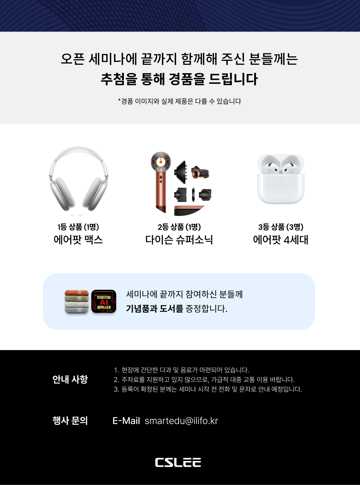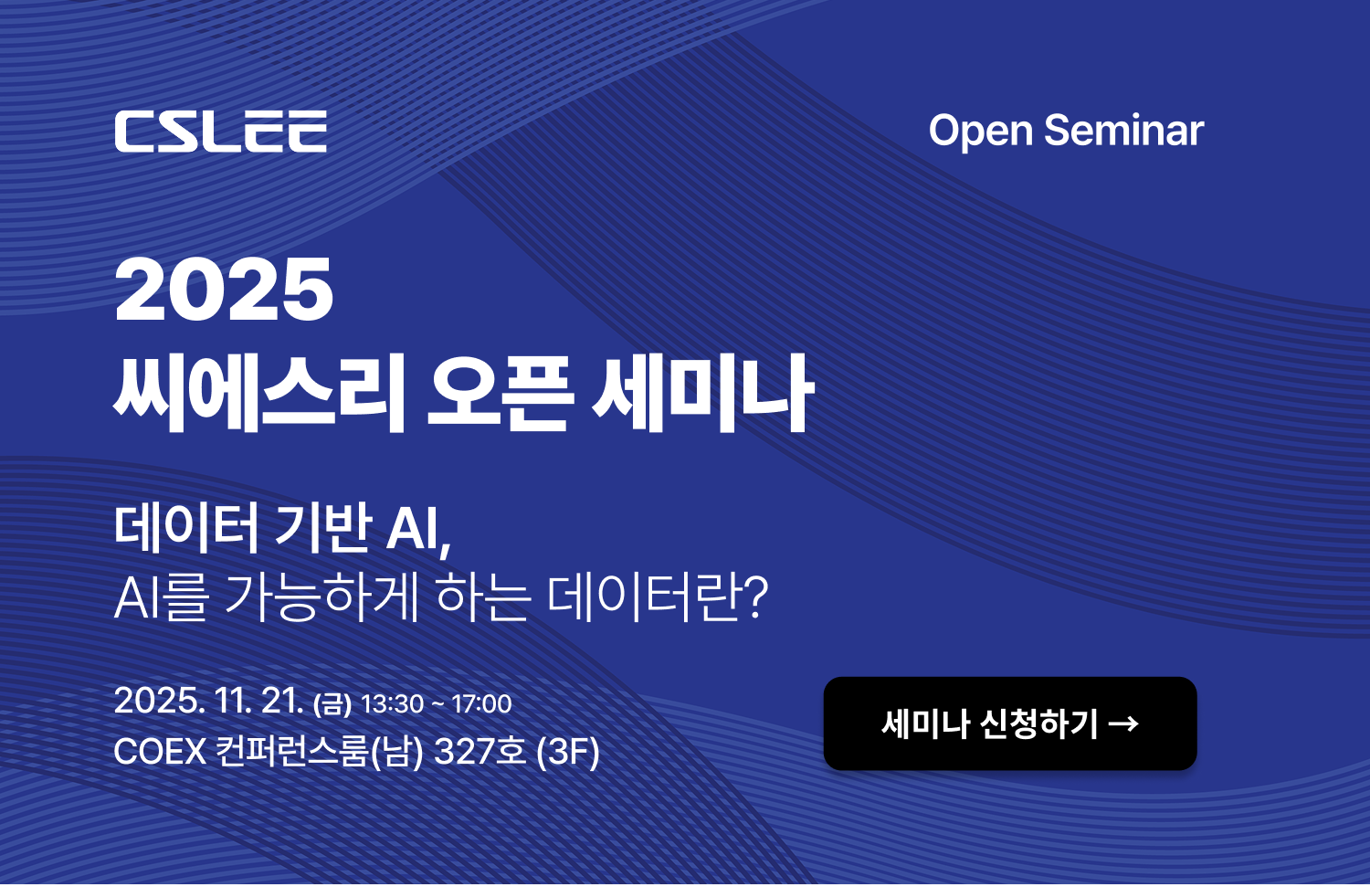 (๊ด๊ณ )๐กAI์ ๋ฐ์ดํฐ ํ์ ์ ํ์ฅ, CSLEE Open Seminar์ ํจ๊ปํ์ธ์! (11.21(๊ธ) 14์, COEX 3์ธต ์ปจํผ๋ฐ์ค๋ฃธ 327ํธ)